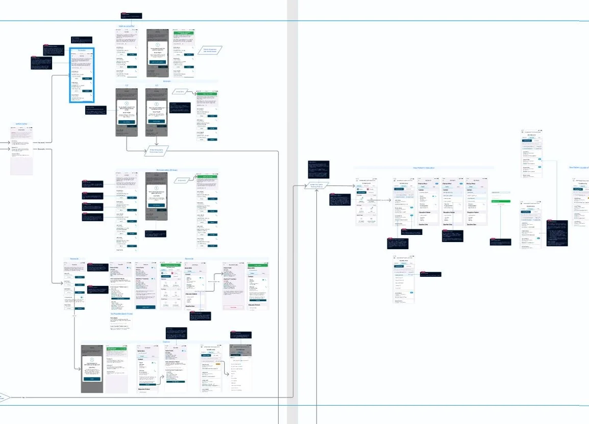 How it helps: MadKind conducts research and pilot testing to show how your solution (sample UX workflow to the right) will be used in real-world settings, uncover adoption barriers, and identify integration opportunities. You’ll gain evidence to finalize design decisions and a clear path to implementation.